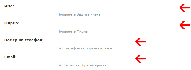 3. Попълнете Вашите Име, Фирма, Телефон и Email за обратна връзка.