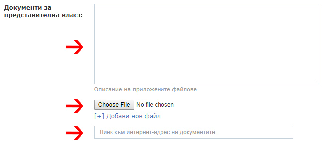 7. Документи за представителна власт. Задължително опишете приложените файлове. Файловете, представящи документите, следва да са в .pdf или .jpg формат, общо ненадвишаващ 8 Mb, като е допустимо да бъдат заместени с линк, водещ към интернет-позициониран адрес, на който да са достъпни.